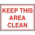 Keep This Area Clean Flat sign, White Styrene with Red Print, Size 14 in wide X 10 in tall