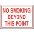 No Smoking Beyond This Point Flat Sign, White Styrene with Red Print, size 14 ft wide X 10 in tall
