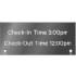 11-1/2"w x 5"t 3/8" clear #2064 transparent grey acrylic, polished edges. Screenprinted copy, Calibre regular, Metallic Silver. Satin chrome end caps on bottom.